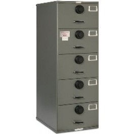 Class 6 filing with a multiple lock design have one lock on each drawer. These 5 drawer gsa file cabinets are approved for the storage of secret, top secret, and confidential information.