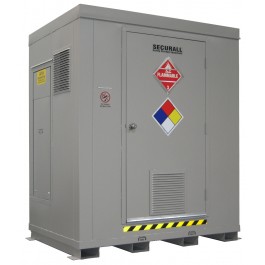 Securall Fire-Rated Hazardous Material Storage Buildings (10'H X 42'W X 9'D Max Dimensions) carry the Factory Mutual System Approval label and are constructed based upon UL Fire Resistance Ratings classification criteria. In addition, all Fire-Rated Buildings come with hydraulic operated self-closing, fire-rated doors and fire damper protected vents.