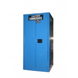 The leak tight sump and shelves of the cabinet are equipped with removable corrosive-resistant polyethylene trays to contain accidental spills. Acid Cabinets are finished in corrosive-resistant blue urethane paint. Large warning label reads: "CAUTION CORROSIVES". Or choose your own special message or wording.