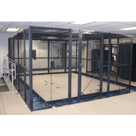Server Cages are constructed of wire mesh partition panels made from 10 gauge wire, woven into a 2" x 1" rectangular mesh design. This wire mesh is then framed in a 1 1/4" x 1 1/4" x 1/8" hot rolled angle frame. Depending on the size of the wire partition panels, we also weld a flat stiffener bar to the wire mesh and angle frame.