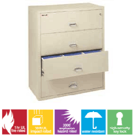 At 44 inches this is the best bang for your buck in lateral fireproof file cabinets.. The 4-4422-C comes with hardware to store legal size documents side to side and letter size documents front to back, includes the high security Medeco key lock and a 1 Hour UL fire rating. Add DRYFiles for added waterproof protection!