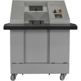 | Marketing Information | High quality materials and "Made in Germany" quality for safety and durability. Cutting rollers made of hardened solid steel. Optional discharge conveyor belt for transporting material into a separate container. Powerful motor allows for continuous operation. An automatic return eliminates material jams. User safety through emergency off switch. Multifunction element for intuitive operation. Practical storage table for data carriers. Mobile on castors. |