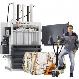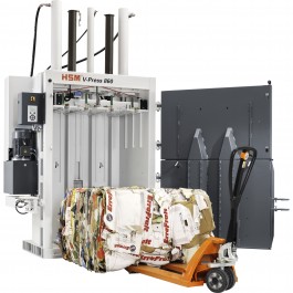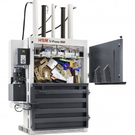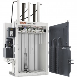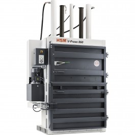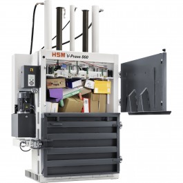 HSM V-Press 860L Vertical Baler - Compresses plastics, paper bags, cardboard boxes, PET bottles and packing paper.