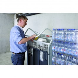Used packing material is fed into baling press immediately after unpacking; does not need to be transported into interim storage. Baled produced can be re-pressed in hydraulic HSM baling presses (i.e. compressed into denser and larger bales). Does not any electricity, servicing or maintenance. Effortless to operate with a minimum amount of strength. Simple and easy bale extraction; can be comfortable transported on a pallet. Made in Germany.