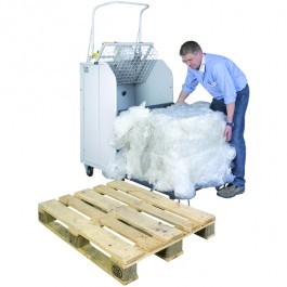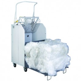 Compresses plastic foils, paper bags, lightweight boxes and packing paper
