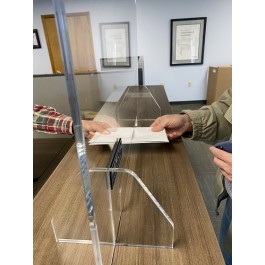 These new acrylic shields are designed for teller, cashier and customer protection. Available in two sizes, standard and narrow, the plastic barriers are both lightweight and portable, and come with a removable base for easy relocation.