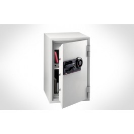 Ideal for commercial office or home, the SentrySafe FIRE-SAFE® S6370 features a 1-hour fire rating, combination with key lock, locking drawer, multi-position shelf, 5 live locking bolts and 3 dead bolts.