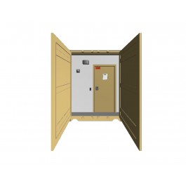 The Server Room SCIF is built to hold up to four server racks (24”x36”), plus one (1) IT workstation with receptacle and 1 shielded Cat 6 network connection. It is built to ICD 705 standards for SCIF or SAPF accreditation. It meets STC 50 acoustic protection and the minimum TEMPEST recommendations, as dictated by the ICD 705 Tech Spec V1.5.