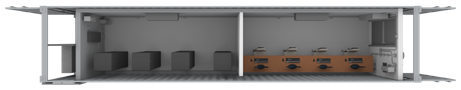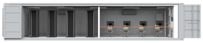 The Server Room SCIF is a 40-foot ISO shipping container is built to ICD 705 standards for SCIF or SAPF accreditation. It’s divided in half with an interior wall and door to serve as both a server room to hold up to four (4) server racks (24”x36”) and as a workspace to accommodate 1-4 workstations. It meets STC 50 acoustic protection and the minimum TEMPEST recommendations, as dictated by the ICD 705 Tech Spec V1.5.