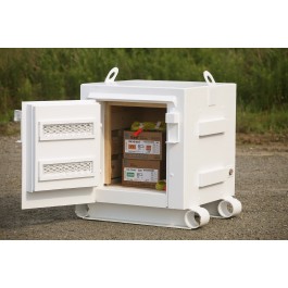 Key Features: ¼″ hot-rolled steel plate housing; hardwood lining with ½″ plywood top; forklift/lift-ring compatible skids; bullet-, fire-, and theft-resistant; optional lightning grounding kit; BATF-approved locks.