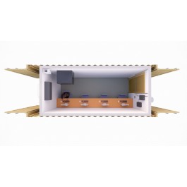 This 20-foot ISO shipping container is built to ICD 705 standards for SCIF or SAPF accreditation. It serves as a work space to accommodate 1-4 workstations and includes a work surface plus two (2) shielded Cat 6 network connections per workstation. It meets STC 50 acoustic protection and the minimum TEMPEST recommendations, as dictated by the ICD 705 Tech Spec V1.5. Container includes Kaba Mas X10 series locking device, UL 2050-compliant Intrusion Detection System (IDS), GSA APL-approved Access Control System (ACS), CCTV, and two (2) tons of cooling with a split ductless HVAC system. Includes 1-4 workstations with receptacles, four (4) additional receptacles, wall-mounted server rack, and patch panel for network. Each Rapid SCIF container includes unlimited accreditation consulting support, including draft sections of Construction Security Plan (CSP), and Pre-Construction Checklist, construction information for your Fixed Facility Checklist (FFC), and photo documentation.